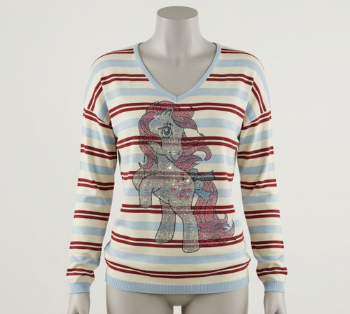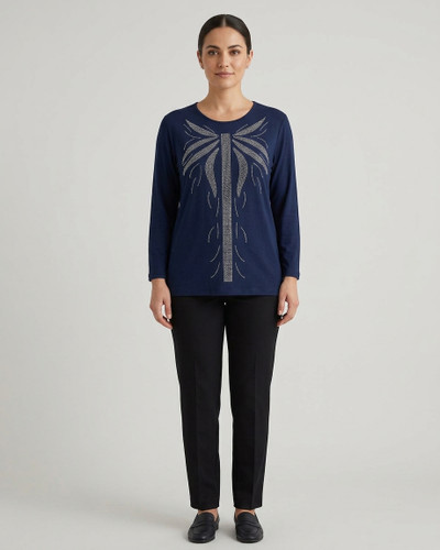 بلوز زنانه مجلسی طرح نگین‌دار براق، آستین بلند و یقه گرد